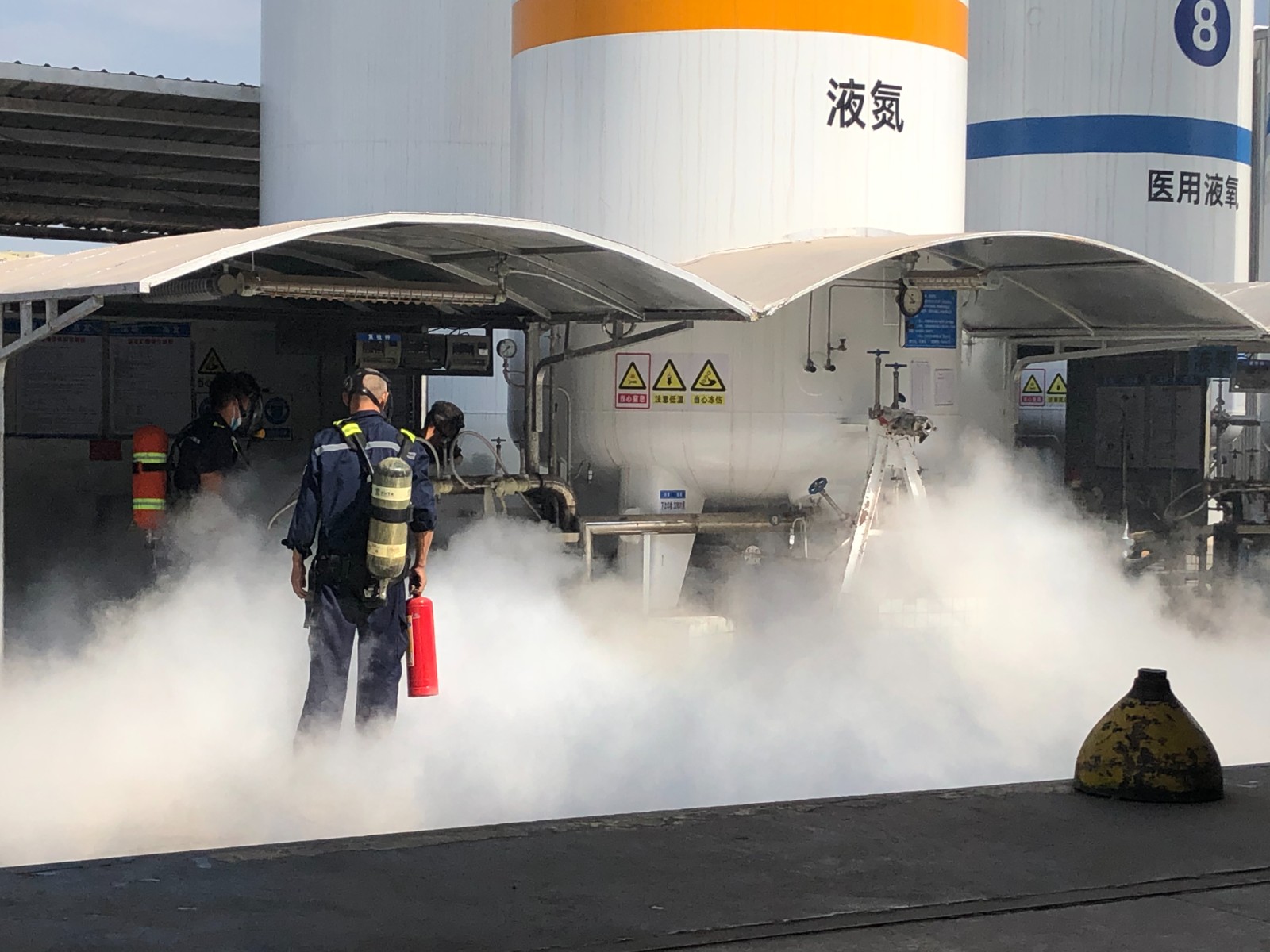 The drill site focused on liquid oxygen gas leakage, fire emergency disposal; gas poisoning scene first aid disposal; gas tank smashing first aid emergency disposal. The whole exercise process, command, and dispatch orderly, each group of exercise members disposed of properly, most of the staff at the scene can quickly respond to the safety production accident alarm, the rescue team can effectively organize personnel for evacuation, alert, fire extinguishing, first aid, repair, and other actions, to achieve the expected purpose.